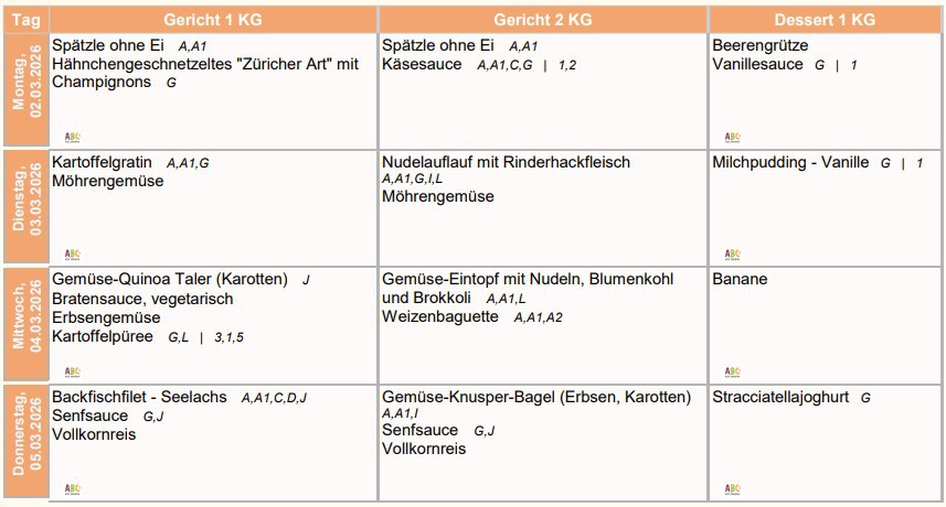 Der Speiseplan vom 23. Februar bis 26. Februar 2026