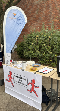 Auch der Informationsstand des Förderkreises durfte nicht fehlen, an diesem konnte man sich über die Arbeit des Förderkreises informieren oder zum Erwachsenenlauf anmelden. Nach Abgabe des Startgeldes welches dem Förderkreis zu 100 Prozent zu Gute kommt, sind in diesem Jahr 15 Teilnehmer:innen an den Start gegangen.