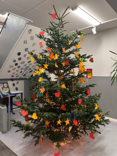 Wie im vergangenen Jahr konnten wir wieder eine nachhaltige Lösung für den Weihnachtsbaum finden. Wieder wurde ein Baum im Sommer verschont, damit er in der Vorweihnachtszeit das Erdgeschoss des Stelzengebäudes bereichern kann. Den Transport wurde wieder von Mitgliedern des Förderkreises organisiert.